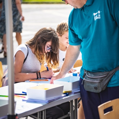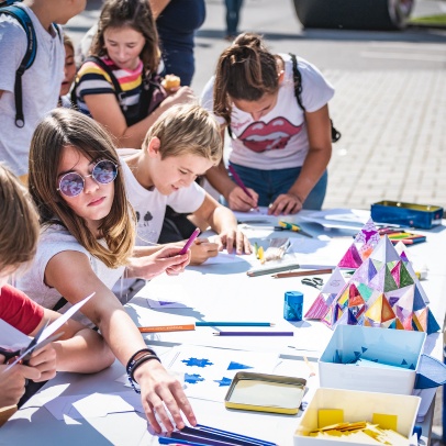 6.9.2018 se na akci Art & Science pod jedním stanem sešli matematici stavební a strojní fakulty. Dopoledne u nás procvičili své mozky středoškoláci při výpočtu obvodu a obsahu zajímavého mnohoúhelníku, odpoledne jsme u stánku přivítali návštěvníky všech věkových kategorií. Naším cílem bylo ukázat, jak může pomoci jednoduché matematické struktury vzniknou téměř umělecké dílo. Papírové čtyřstěny, které jste nám pomohli vytvořit, se postupně stávaly součástí Sierpińského čtyřstěnu. I přes nelehkou strategickou pozici, kdy nám z jedné strany konkurovalo laserové bludiště a z druhé strany studentská formule, nabýval s rostoucí pyramidou náš stánek na popularitě a v šest večer jsme dětem museli "rvát" pastelky a nůžky z rukou, abychom mohli skončit. Vzhledem k výsledku, ke kterému jsme se dopracovali (128 dílků z plánovaných 1024), máme o program postaráno na dalších sedm let. Moc všem za dnešek děkuji, byli jste úžasní !!!